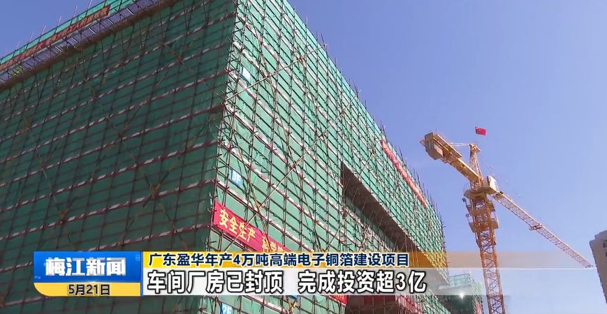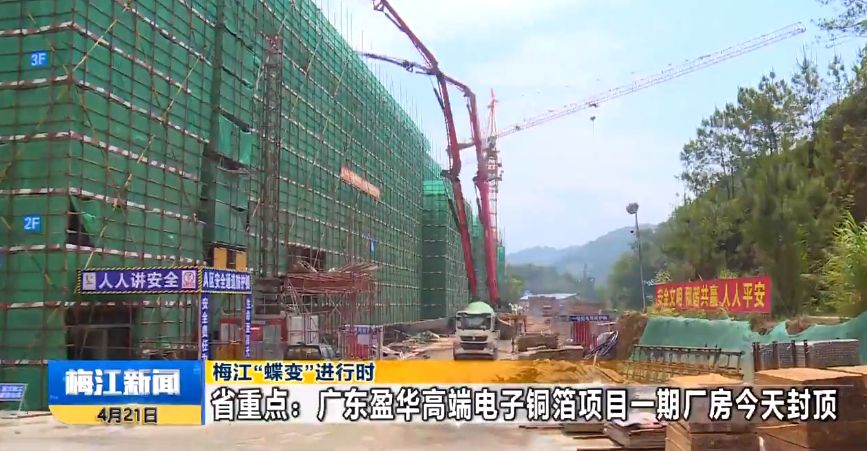 梅江“蝶變”進行時 省重點:廣東盈華高端電子銅箔項目一期廠房封頂