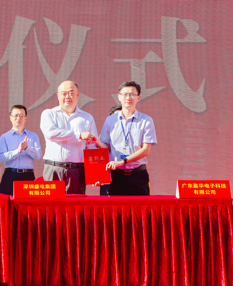 廣東盈華電子科技總經理李遠泰與深圳盛屯集團有限公司董事長、總裁陳東簽訂《戰略合作協議》。