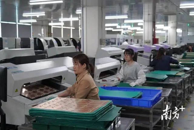 據在該公司工作近14年的員工吳先軍介紹,以前大部分機器需要工人手動放板、翻板,一名工人最多只能負責兩臺機器,如今通過不斷地更新設備,越來越自動化的操作不僅解放了工人的雙手,還提高了效率,現在一名工人最多能夠同時負責12臺機器。