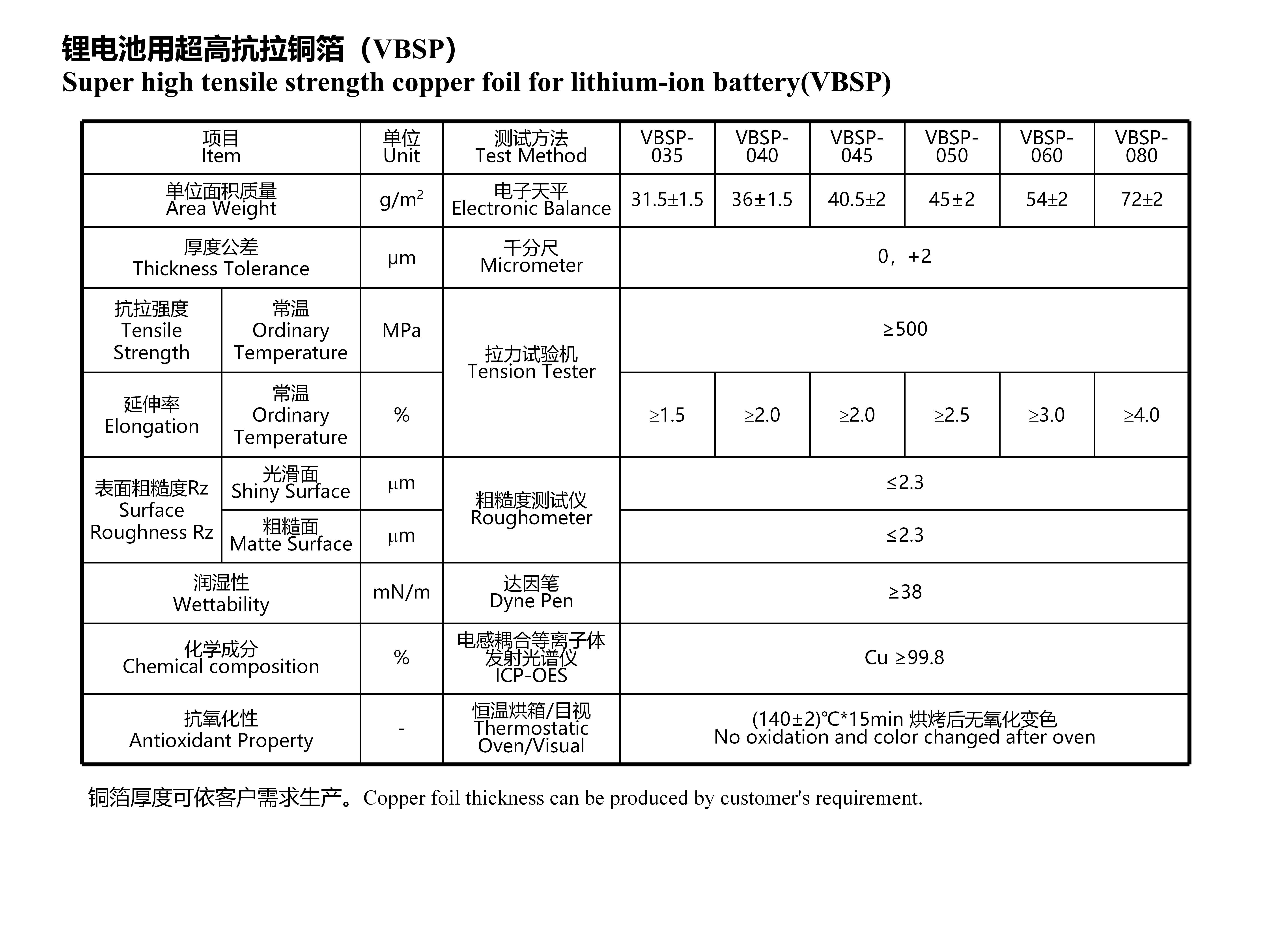 鋰電池用超高抗拉銅箔(VBSP)